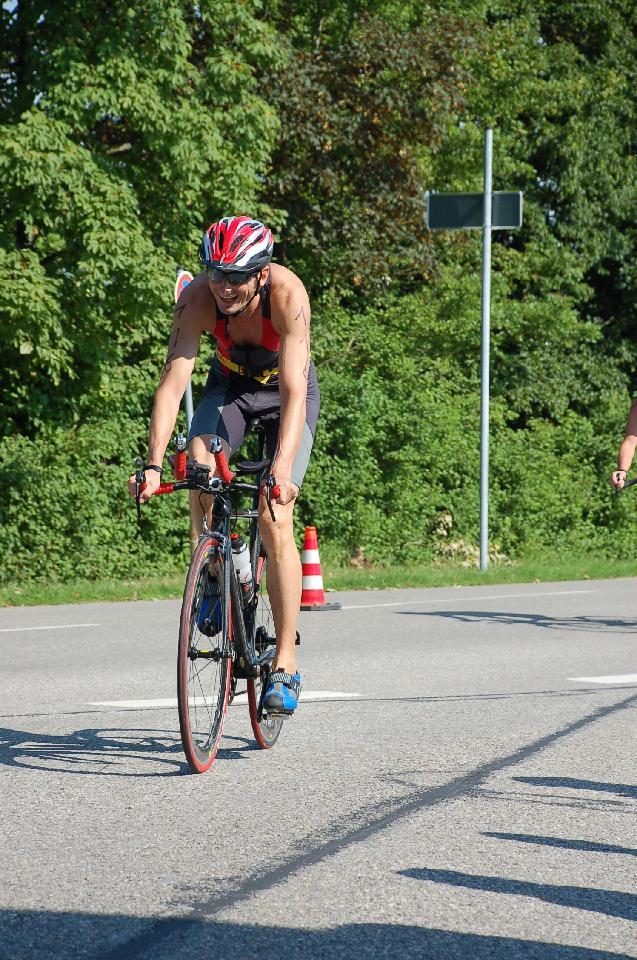 Auf dem Rad nur nicht zu scharf anfahren war meine Taktik. So rollte ich langsam den Schelmengraben hinauf. Die Beine waren anfangs recht schwer und ich befürchtete schon, dass das Brustschwimmen hier zu viel Energie gekostet haben könnte. Es lief dann aber immer besser und ich hatte gut Druck und konnte an sehr vielen Athleten vorbeiziehen. Im Köpfchen schwirrte mir ein Interview mit Normann rum (“The Weapon is my Bike...that´s where I put the minutes on the other Athlets...). Eigentlich war die Strecke zu kurz für mich, denn als ich so richtig rollte war ich wieder in der Wechselzone.