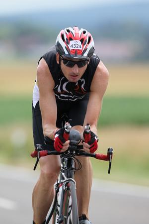 Rad war richtig hart. Bereits in Hausen nach Kilometer 6 hatte ich Startnummer 34 eingeholt. Dieser Teilnehmer hatte allerdings an einem Rucksack schwer zu tragen...*g*. Anfangs flog ich nur so vorbei, mit zunehmender Dauer wurde es logischerweise zäher, weil weiter vorne bessere Radler unterwegs waren. Die neue Radstrecke ohne Wendepunkt am Zeckener Kreuz, sondern mit Rückweg über Oesdorf und Burk ist wesentlich entspannter zu fahren. Die B470 ist klasse, obwohl leichter Gegenwind herrschte konnte ich gut drücken. Lediglich das letze Stück über die Sportinsel und Milkabrücke zurück zum Paradeplatz ist etwas eckig zu fahren. Heraus kam die 2. schnellste Radzeit mit einem satten 41er Schnitt. Nur der Sieger Markus Unsleber war schneller.
