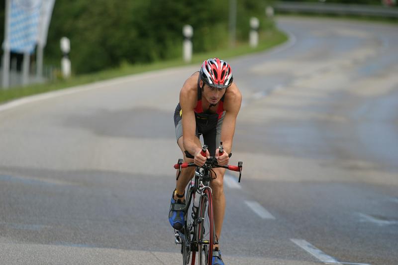 Das Schwimmen war auch mit Neo nicht so der Brüller, weil ich zu wenig Platz hatte und um die Wendebojen es sehr eng zuging. Anfangs beim Radfahren fühlte ich mich matt und ohne rechten Druck auf den Pedalen. Da dachte ich die Schlemmerei gestern, der wenige Schlaf und die vergleichsweise kühlen Temperaturen fordern ihren Tribut. Es wurde auf der B471 dann aber zusehends besser und lief doch recht ordentlich.