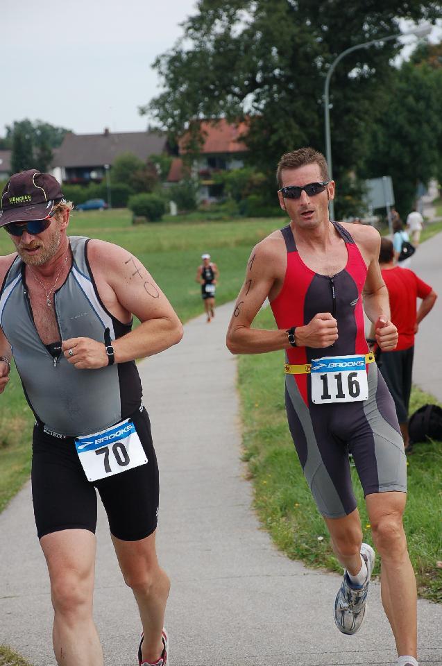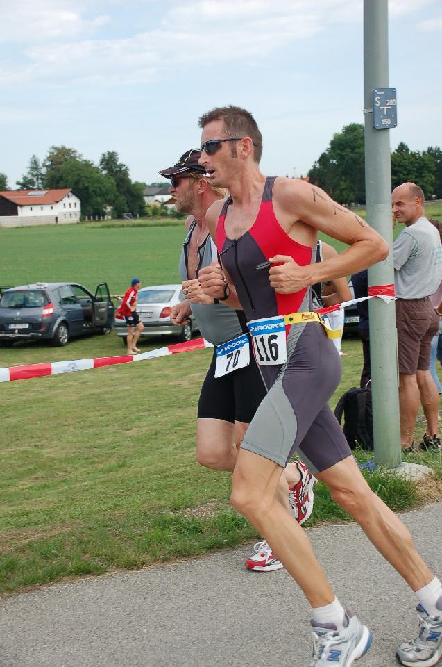 Es lief nicht soo schlecht, aber nicht gut genug um vorne mitmischen zu können. Bereits nach 5 km überholte mich der 30 Sekunden hinter mir gestartete Athlet. Im Rennverlauf zogen noch weitere fünf an mir vorbei, was mir ganz klar meine Grenzen aufzeigte (und mich für das Training der Saison 2009 motivieren hilft). Da hilft es auch nicht damit zu argumentieren, dass ich seit Regensburg fast nicht mehr trainiert habe.
