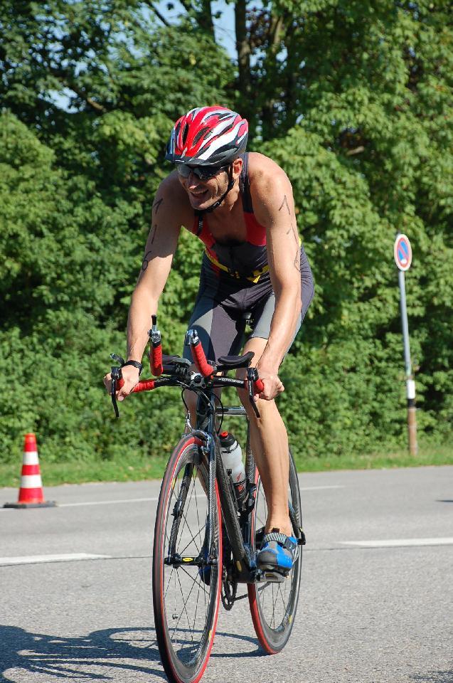 Auf dem Rad nur nicht zu scharf anfahren war meine Taktik. So rollte ich langsam den Schelmengraben hinauf. Die Beine waren anfangs recht schwer und ich befürchtete schon, dass das Brustschwimmen hier zu viel Energie gekostet haben könnte. Es lief dann aber immer besser und ich hatte gut Druck und konnte an sehr vielen Athleten vorbeiziehen. Im Köpfchen schwirrte mir ein Interview mit Normann rum (“The Weapon is my Bike...that´s where I put the minutes on the other Athlets...). Eigentlich war die Strecke zu kurz für mich, denn als ich so richtig rollte war ich wieder in der Wechselzone.