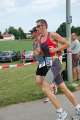 Der Wechsel klappte mit meiner Neo-Auszieh-Premiere gut. Am Rad fuhr ich verhalten los, bis dann die ersten vor mir auftauchten und ich dadurch zusätzlich motiviert zulegte. Die Strecke selbst ist absolut flach und so sah ich die anderen Radler jeweils gut vor mir. Der Tacho pendelte meist knapp über der 40er Marke und bei Überholvorgängen auch schon mal über 45. So nach und nach flog ich an ganz vielen anderen vorbei und es wollte fast kein Ende nehmen (meine Serie noch nie am Rad überholt worden zu sein hielt auch heute!). Da ich in der mittleren Startgruppe der Männer startete und die Frauen noch davor starteten, war doch einiges los auf der Strecke. Den letzten Kilometer bin ich dann eher verhalten gefahren und habe auch schon zu früh den rechten Fuß aus dem Schuh am Rad ausgezogen, was einige Sekunden gekostet haben dürfte.