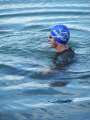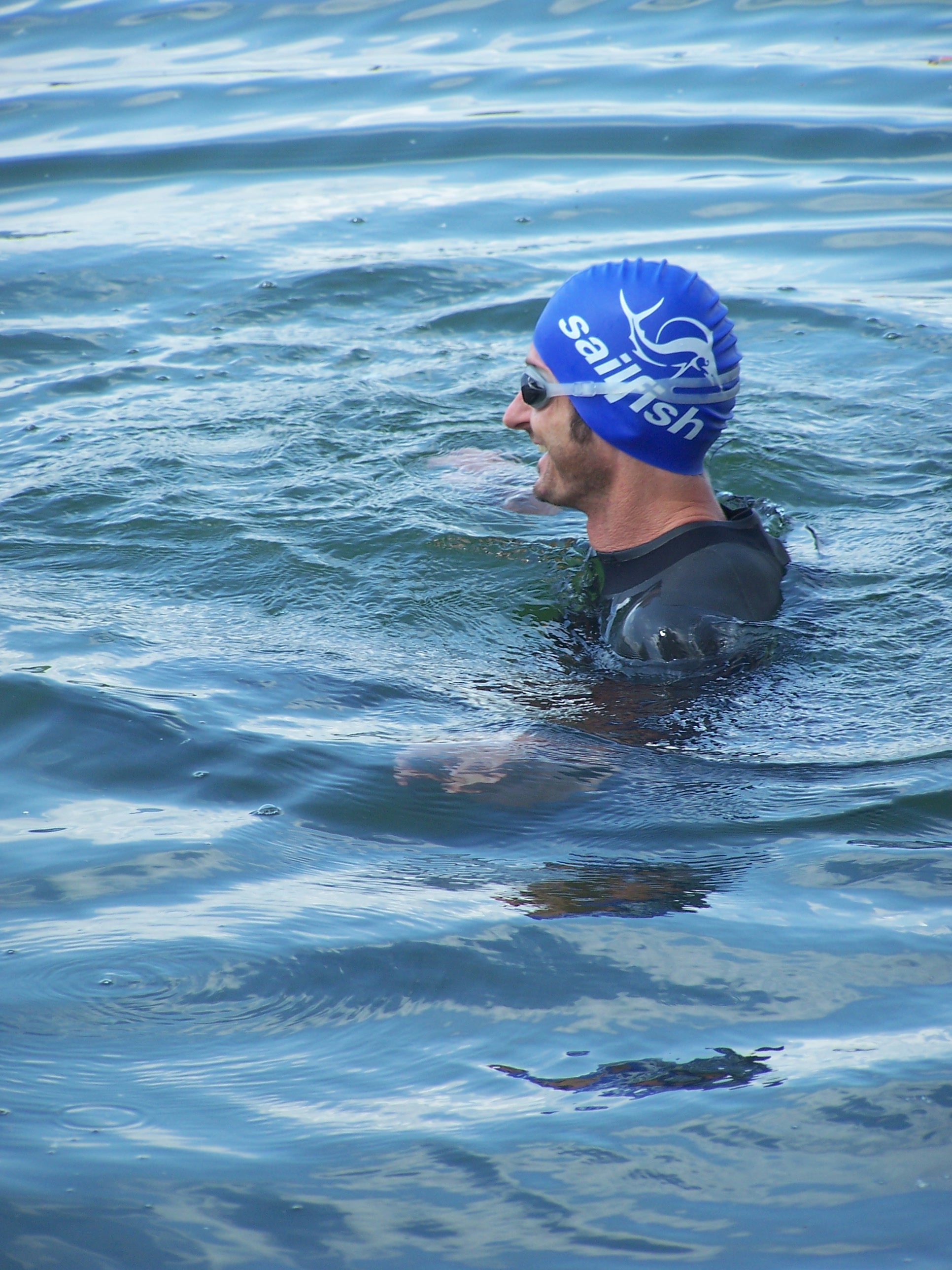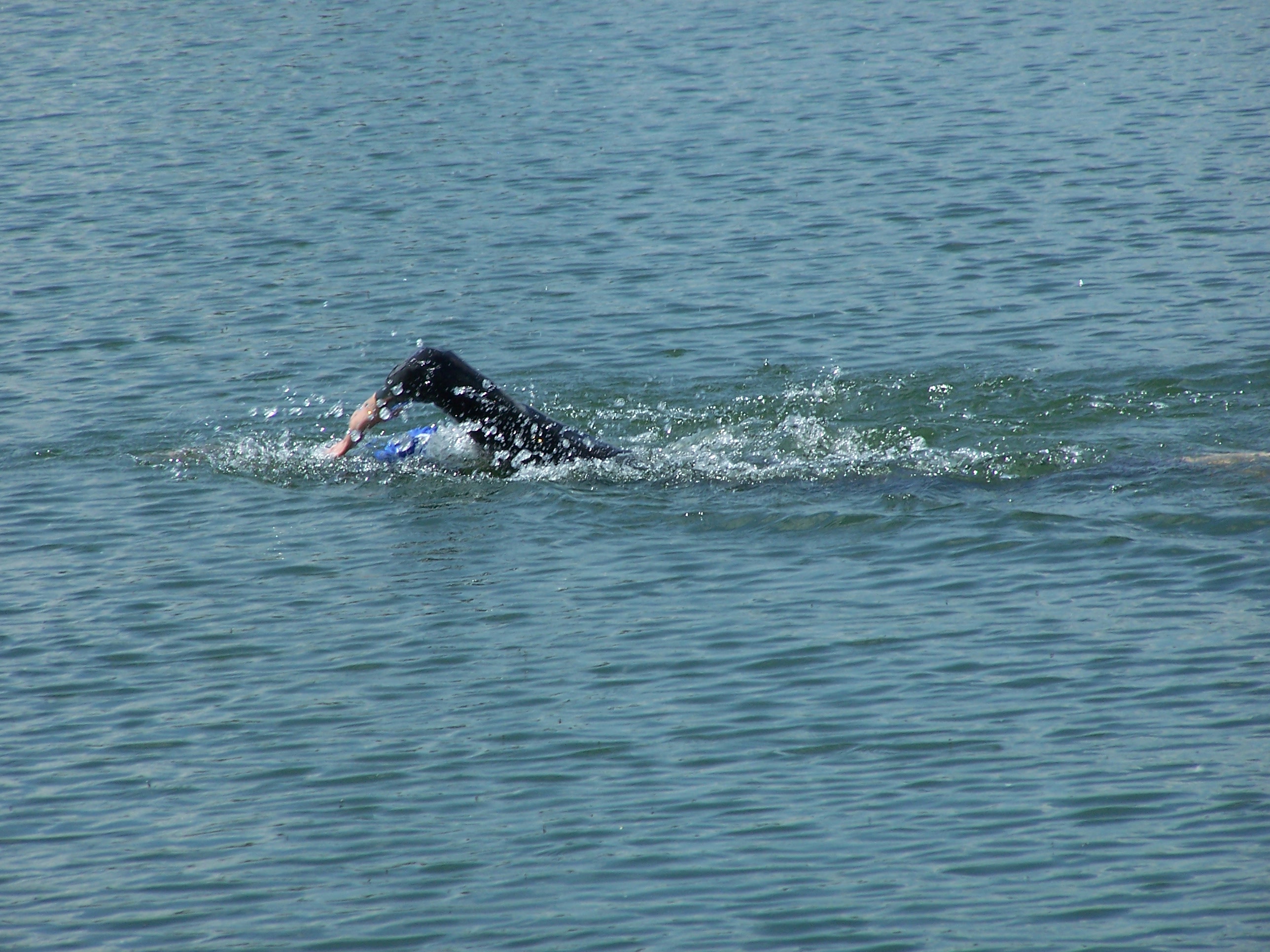 Das Einschwimmen bei 17,6 °C war kalt. Das Schwimmen selbst gewohnt locker und langsam. Wenn die Strecke exakt die gleiche gewesen sein sollte wie 2008, so war ich fast 2 Minuten langsamer. Also Leute, keine Schwimmseminare besuchen, man sieht wie es sich auswirkt *g*!