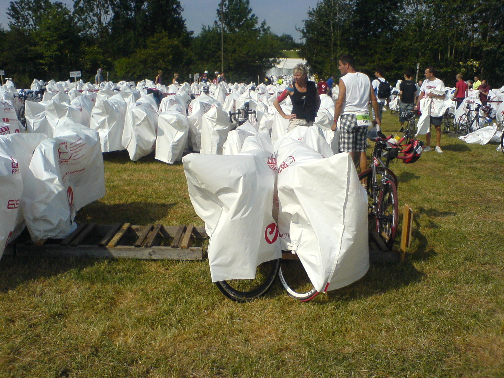 Wir besprachen dann alle wichtigen Dinge. Dazu gehörte auch der Weg vom Schwimmausstieg zum Radstellplatz. Aber wie so oft, es kam dann anders als gedacht, denn der Weg vom Wechselzelt zur Staffelwechselzone führte dann aussen ums Gelände herum und alles “vorbereiten” war somit umsonst.